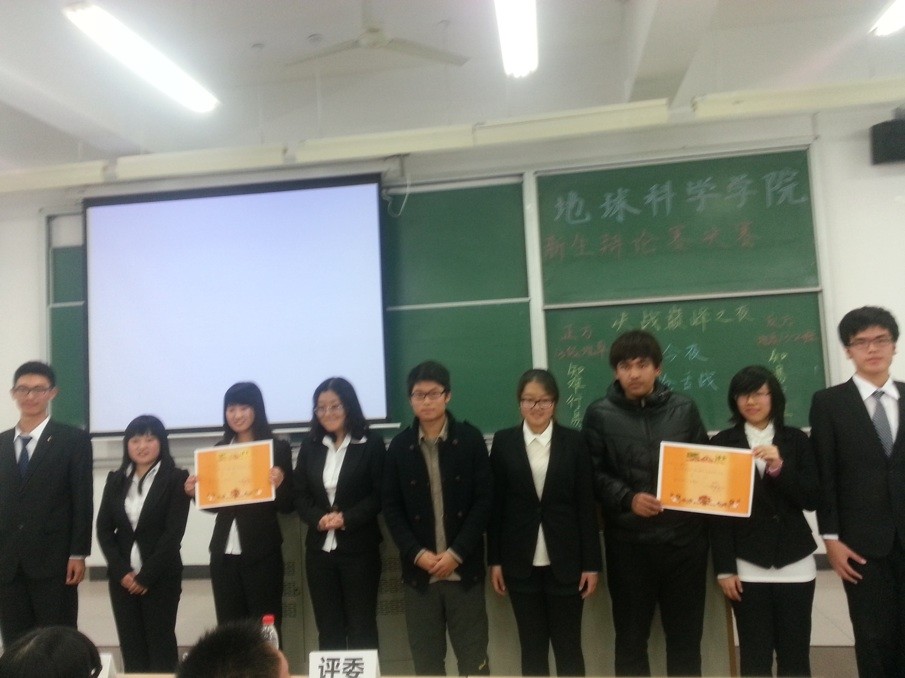10月15日至11月12日,中國石油大學(北京)地球科學學院舉辦了新生辯論賽,辯手從地球科學學院2013級各班新生中選出,組成四組,針對不同辯題,正反辯論,進行了多場對決。經過層層競爭,地質13-5班過關斬將,奪得了本次辯論賽的冠軍,地質13-6班王彤從眾多辯手中脫穎而出成為最佳辯手。