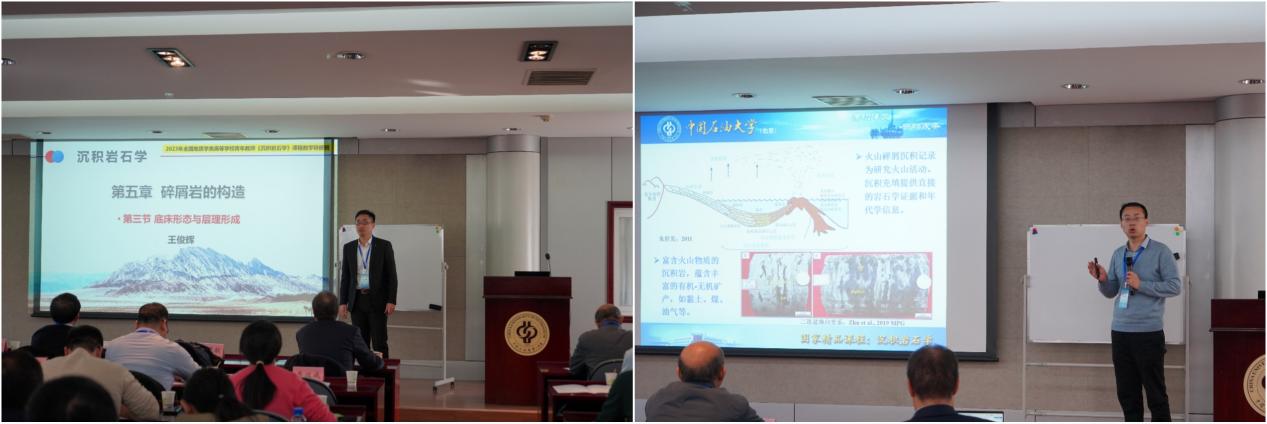 中國科學院院士、中國地質大學(北京)教授王成善作了題為“沉積巖石學與沉積學——一門具有魅力的學科”的線上視頻報告。湖北省教學名師、長江大學教授毛寧波,北京市教學名師、中國礦業大學(北京)教授邵龍義,河南理工大學教授鄭德順,國家級教學名師、中國石油大學(北京)教授朱筱敏分別從一流課程建設、課程思政建設、教學技能提升等方面進行了經驗交流和分享;此外,來自不同高校的教師袁靜、由雪蓮、廖紀佳、阮壯、朱世發、王俊輝進行了示范課教學。