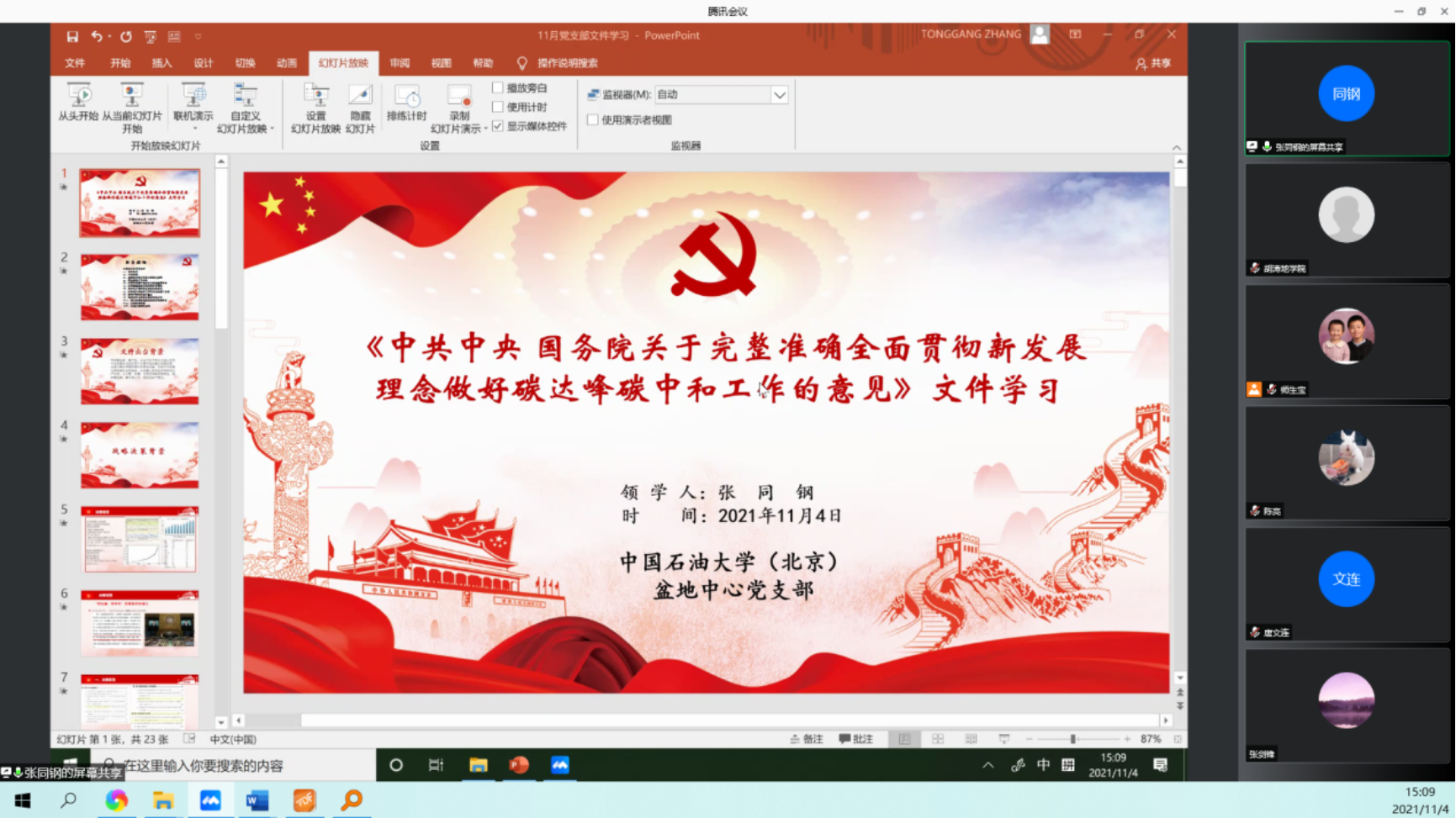 本次黨員和教師學習的內容聚集“雙碳”背景下國家新發展理念和新時代石油行業發展前景,與石油高校教師教學、科研息息相關,大家認為內容有意義、學習有深度、研討有實效,是典型的將國家發展、行業發展、學校發展與個人發展相結合的一次學習和研討。