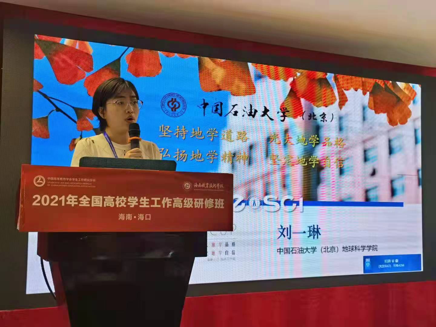 海南省教育廳黨委委員、副廳長(zhǎng)黎岳南,中國(guó)青年出版總社黨委副書記、紀(jì)委書記、監(jiān)事王劍,中國(guó)青年報(bào)新聞事業(yè)部副主任亓洪良,中國(guó)高等教育學(xué)會(huì)學(xué)生工作研究會(huì)副理事長(zhǎng)、南京信息工程大學(xué)黨委副書記、副校長(zhǎng)王堯,中國(guó)高等教育學(xué)會(huì)學(xué)生工作研究分會(huì)秘書處單位、中北大學(xué)環(huán)境與安全工程學(xué)院黨委副書記張少明,海南職業(yè)技術(shù)學(xué)院黨委書記王承慶等同志出席開幕式。時(shí)代楷模、最美奮斗者、全國(guó)優(yōu)秀教師、大連海事大學(xué)馬克思主義學(xué)院教師曲建武教授等專家學(xué)者蒞臨開幕式。開幕式由海南省高校思想政治工作中青年骨干隊(duì)伍建設(shè)項(xiàng)目負(fù)責(zé)人、海南職業(yè)技術(shù)學(xué)院校長(zhǎng)助理、黨委學(xué)工部部長(zhǎng)許昌斌主持。我校地球科學(xué)學(xué)院輔導(dǎo)員高思航和劉一琳應(yīng)邀參會(huì),并在分論壇分別以“‘地學(xué)知識(shí)走進(jìn)中小學(xué)課堂’的價(jià)值意蘊(yùn)及啟示”和“堅(jiān)持深耕細(xì)作,推進(jìn)‘三個(gè)融合’,構(gòu)建大地之光立體育人新格局”做主題發(fā)言,介紹了我校“三全育人”綜合改革試點(diǎn)建設(shè)中實(shí)踐育人品牌“大地之光”和“李四光中隊(duì)講師團(tuán)”,融合時(shí)代特征、專業(yè)特點(diǎn)、社會(huì)特需,深耕實(shí)踐育人體系,著力培養(yǎng)有高度、有廣度、有溫度的時(shí)代新人,走出了一條可復(fù)制、可遷移、可持續(xù)的育人實(shí)踐之路。