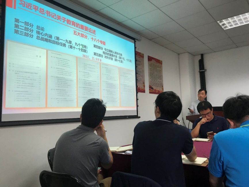 首先,盆地與油藏研究中心教工黨支部書記劉小平作了題為“堅守教育報國初心,勇?lián)⒌聵淙耸姑暯娇倳涥P(guān)于教育的重要論述學習體會”的報告。劉小平帶領(lǐng)大家回顧并學習了習近平總書記關(guān)于教育的重要論述,詳細解讀了教育部編著的《深入學習習近平關(guān)于教育的重要論述》的主要內(nèi)容。并匯報了三點學習體會:一要提高政治站位,解決“為誰培養(yǎng)人”的問題;二要落實立德樹人根本任務(wù),解決“培養(yǎng)什么人”的問題;三要提高教師的自身綜合素質(zhì),解決“怎樣培養(yǎng)人”的問題。習近平總書記指出,教師是人類靈魂的工程師,是人類文明的傳承者,承載著傳播知識、傳播思想、傳播真理,塑造靈魂、塑造生命、塑造新人的時代重任。要做到“四個相統(tǒng)一”,做好“四個引路人”,爭做“四有”好老師。
