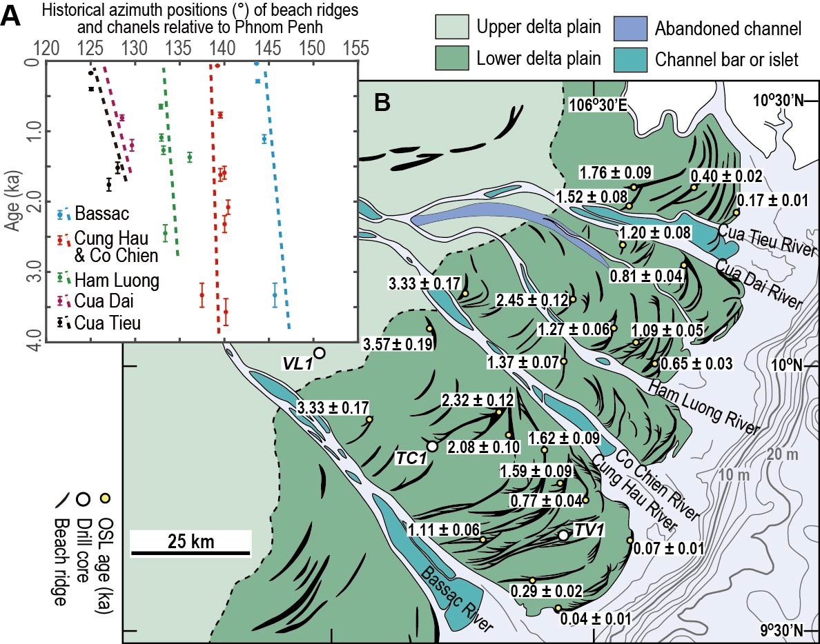 [1] Wang, J., Tamura, T., Muto, T. 2019. Construction and destruction of an autogenic grade system: The late Holocene Mekong River delta, Vietnam. Geology, 47, 669-672.https://doi.org/10.1130/G45872.1