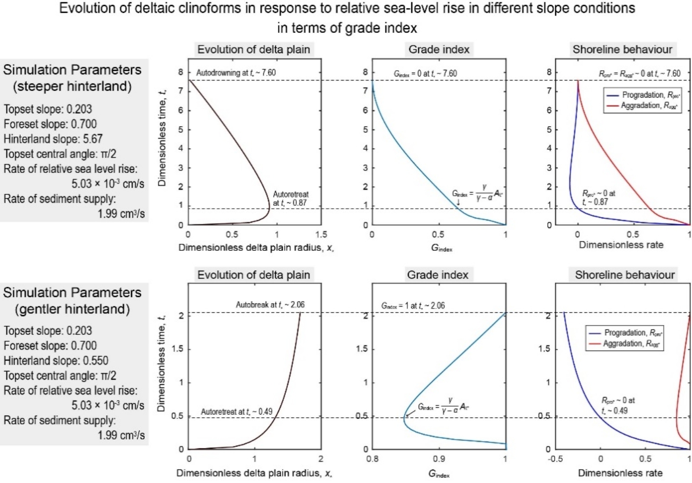 [3] Wang, J., Naruse, H., Muto, T. 2019. The grade index model as a rationale for autogenic nonequilibrium responses of deltaic clinoform to relative sea-level rise. Basin Research, in press.https://doi.org/10.1111/bre.12418