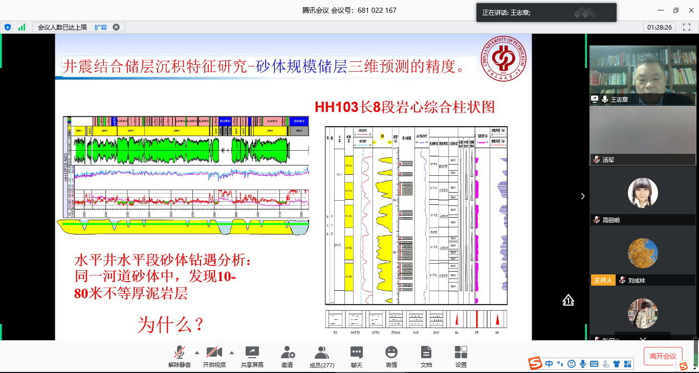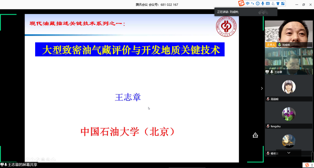 2020年4月29日晚,地球科學學院油氣勘探與開發地質系通過騰訊會議以線上學術交流的形式,成功舉辦了第三十八期的學術沙龍。本期學術沙龍以“大型致密油氣藏評價與開發一體化關鍵技術”為主題,由地球科學學院王志章教授主講、劉成林教授主持,約280位校內外師生及專家共同參加了此次學術活動。