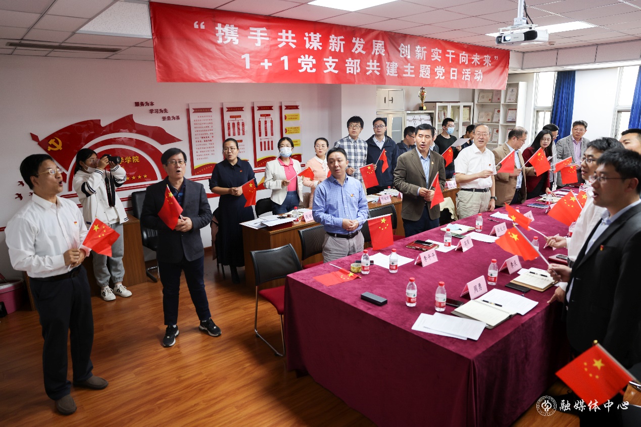 黃磊主任為三個共建黨支部授予了“1+1”支部共建旗幟。