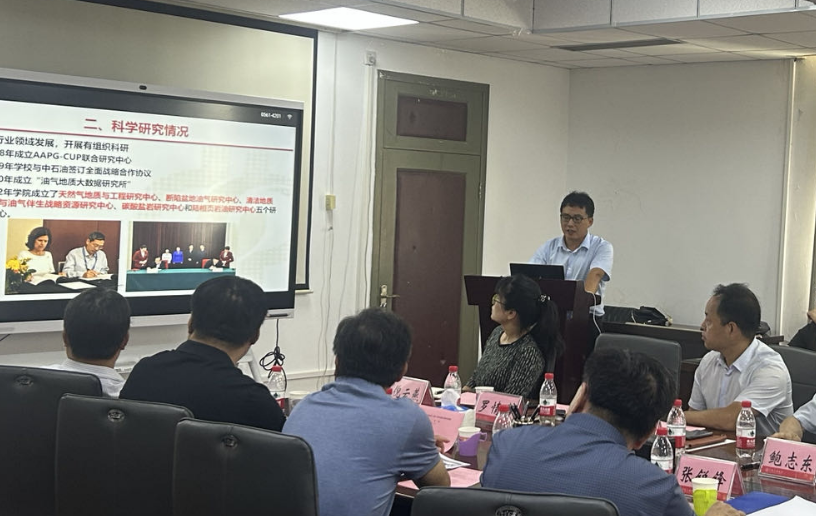 2024年8月21日上午,華北油田公司赴地球科學學院走訪交流,中石大副校長鮑志東、地學院黨委書記姜福杰、二級教授龐雄奇等在地質樓1105會議室接待了華北油田首席技術專家張銳鋒一行。本次會議由地球科學學院黨委書記姜福杰主持。