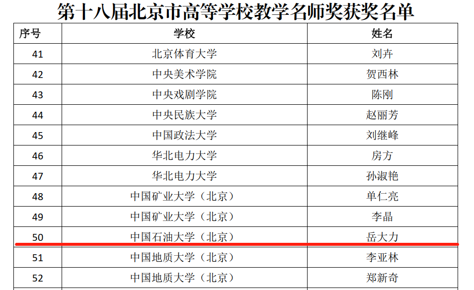 2022年9月,北京市教育委員會(huì)發(fā)布《關(guān)于公布2022年度北京市高等學(xué)校教學(xué)名師獎(jiǎng)獲獎(jiǎng)名單的通知》(京教函〔2022〕396號(hào))。地球科學(xué)學(xué)院岳大力教授榮獲第十八屆北京市高等學(xué)校教學(xué)名師獎(jiǎng)。