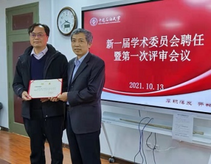 2021年10月13日下午,地球科學學院新一屆學術委員會聘任儀式在地質樓1105會議室舉行,儀式由姜福杰副院長主持。會上,邱楠生院長宣布了新一屆學術委員會主任、副主任和委員名單,并為委員們頒發了聘書。隨后,委員們集體學習了中國石油大學(北京)學術委員章程。新當選的學術委員會主任曾聯波教授做了發言,他表示新一屆委員將盡職盡責、秉持公理、認真履職,積極發揮學術委員會在學術審議、學術評價、學術咨詢等方面的正向作用,為學院和教師的發展做出應有的貢獻。