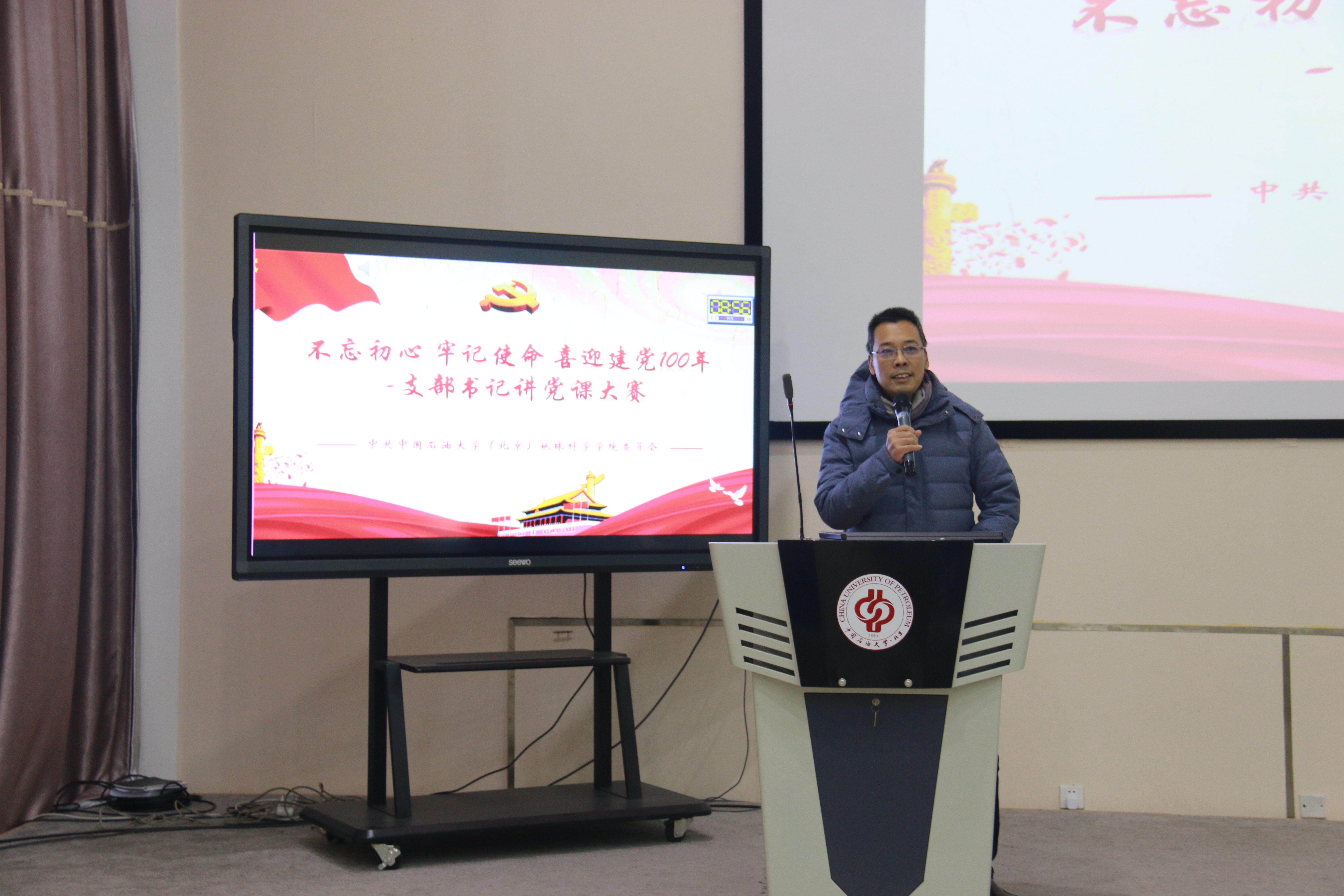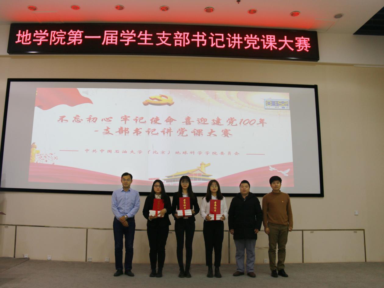 為深入學習黨的十九屆五中全會和習近平總書記給我校克拉瑪依校區(qū)畢業(yè)生重要回信精神,進一步提升師生黨員的黨建理論水平和業(yè)務素質,12月10日下午,地球科學學院黨委舉辦“不忘初心、牢記使命,喜迎建黨一百年”第一屆學生支部書記講黨課大賽。中國石油大學(北京)黨委組織部部長梁喜書、黨委宣傳部副部長張延港、學生工作處副處長戴兵、地球科學學院黨委書記王貴文、黨委副書記周學智及各教工支部書記或支委參加大賽并擔任評委,地學院90余名學生支部書記和委員現(xiàn)場觀摩了比賽。