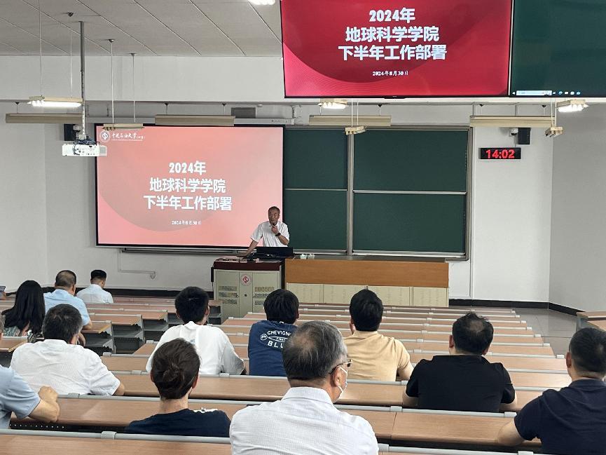 為全面貫徹黨的二十大精神,深入學習貫徹習近平總書記關于教育的重要論述和重要回信精神,落實“中華人民共和國國民經濟和社會發展第十四個五年規劃”,對照落實《中國石油大學(北京)2024年工作要點》,8月30日下午,地球科學學院召開了2024年下半年工作部署會。地球科學學院全體教師參加了會議,會議由學院黨委書記姜福杰主持。
