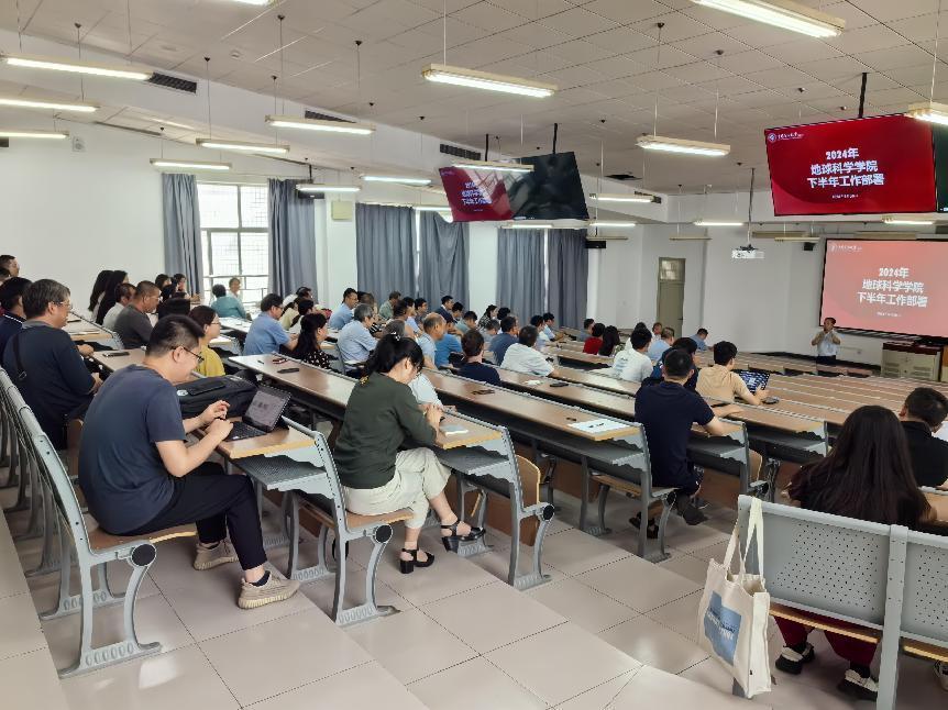 地球科學學院院長王貴文首先介紹了學院上半年的重點工作推進情況并從以下幾個方面對學院下半年重點工作進行了部署。首先做好本科教育教學審核評估工作是重中之重,同時要加強對研究生教育教學中學位論文質量的把控;科研及人才工作、學生工作、黨建工作、工會工作、學科建設工作等幾個方面全面協調發展,實現“同頻共振”。