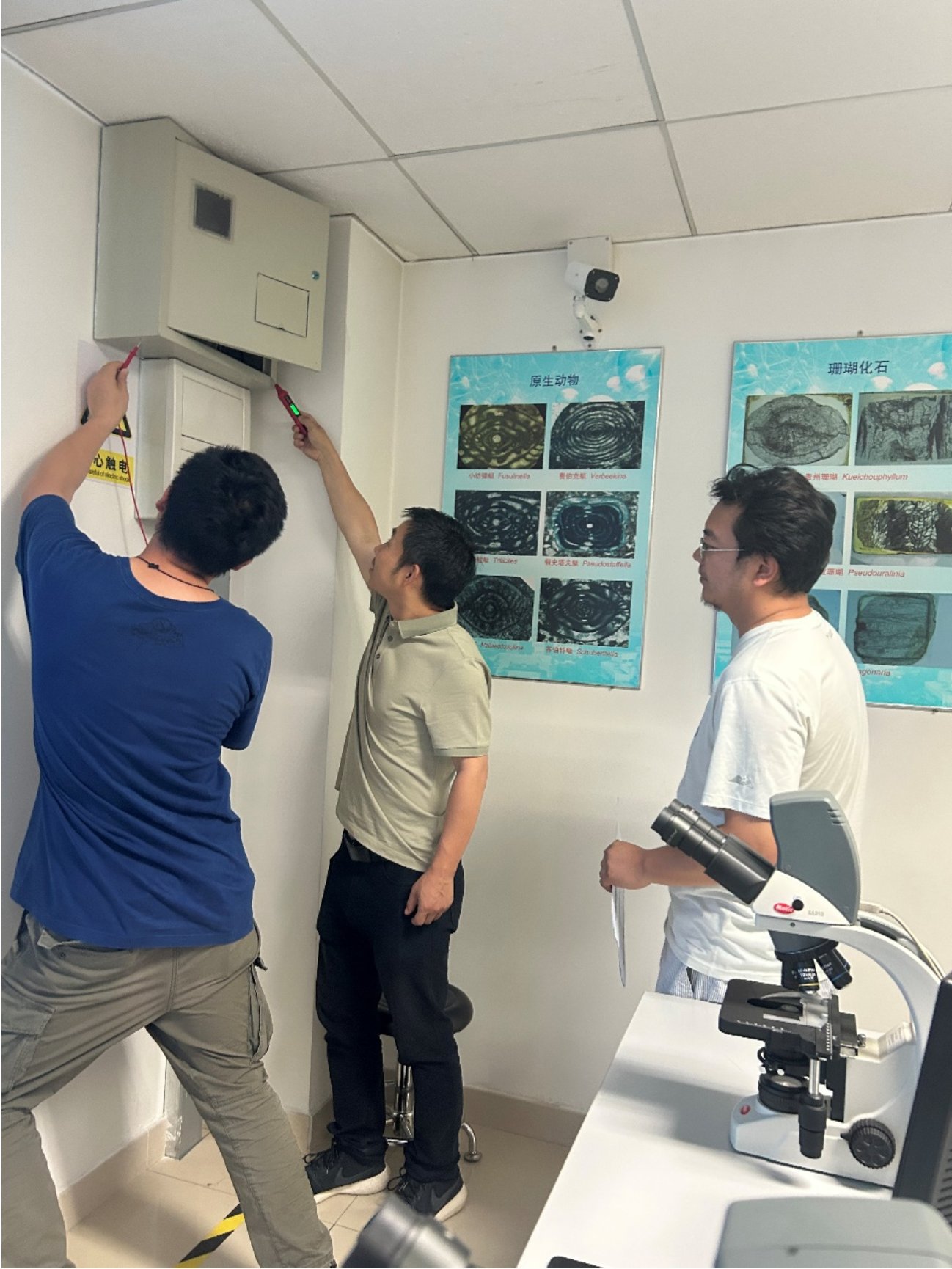 2024年6月17日下午,地球科學學院實驗室安全督查組成員龐宏、王海洲及實驗員李天天,針對實驗室內部的用電安全進行了全面排查,旨在消除實驗室潛在的用電風險,確保實驗室人員和設備安全。