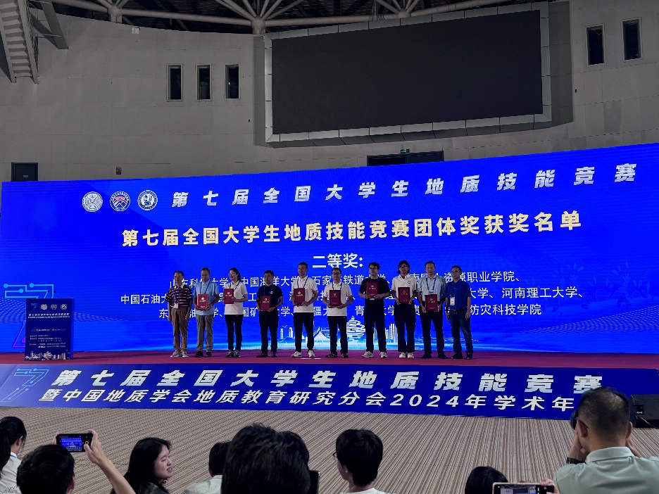 2024年9月5日至9月8日,第七屆全國大學生地質技能競賽暨中國地質學會地質教育研究分會2024年學術年會在青島市隆重舉行,中國石油大學(北京)地球科學學院師生參加了大會并取得了優秀成績。地球科學學院派出9名本科生組成3支隊伍參加大賽,劉鈺銘副院長在中國地質學會地質教育研究分會2024年學術年會做了口頭報告,牛花朋副院長擔任了地質技能競賽地學知識競賽環節的評委。