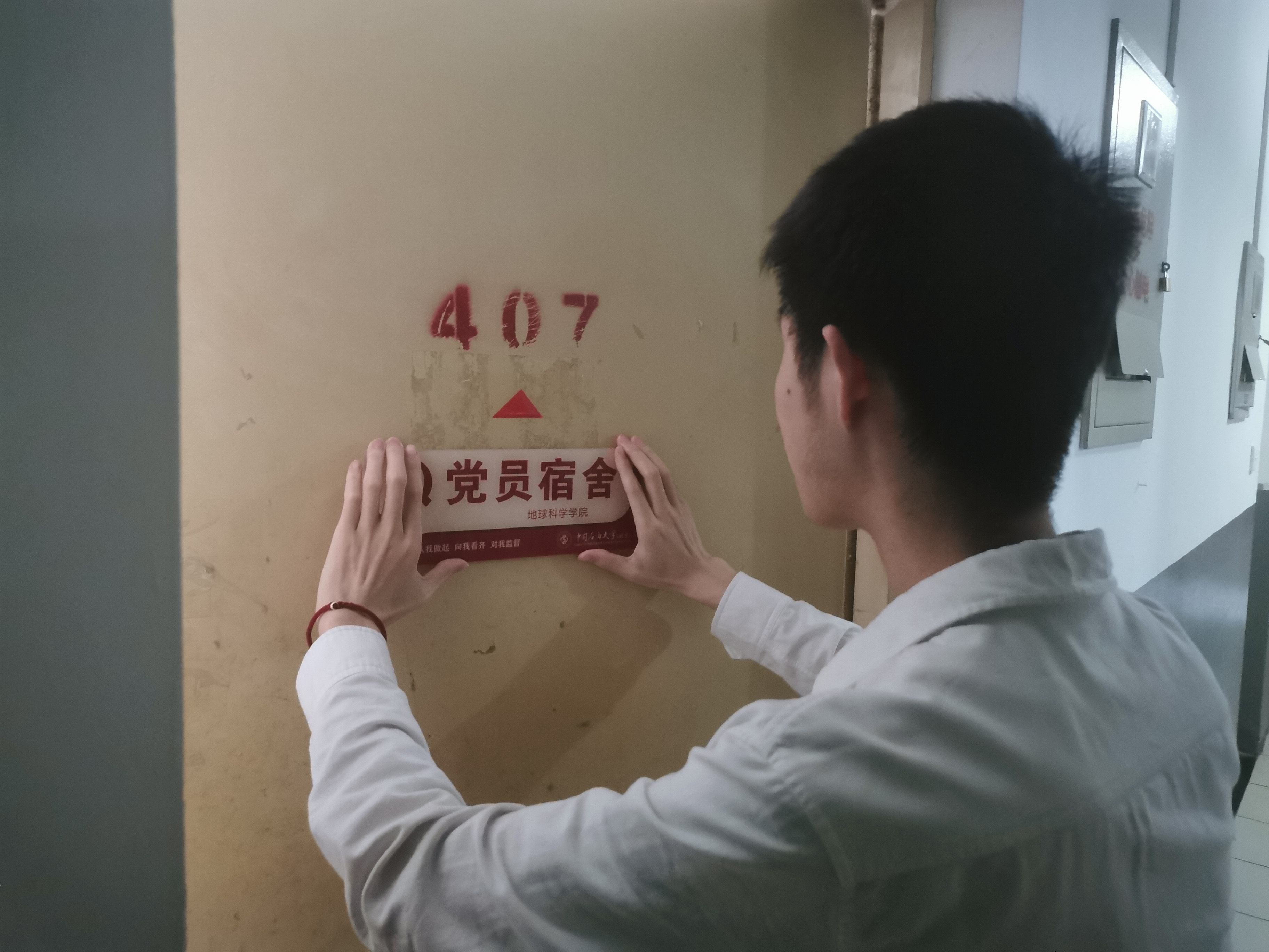 學生公寓社區是學生思想政治教育的重要陣地,在全校師生深入學習貫徹黨的二十大精神之際,為教育引導學生黨員銘記黨員身份,履行黨員義務,做出黨員表率,切實發揮學生黨員先鋒模范和榜樣引領作用,提升學生黨建工作質量,助推學校育人工作的扎實推進和開展。近日。地球科學學院在本科生宿舍中開展黨員宿舍掛牌行動,覆蓋全體在校住宿學生黨員。