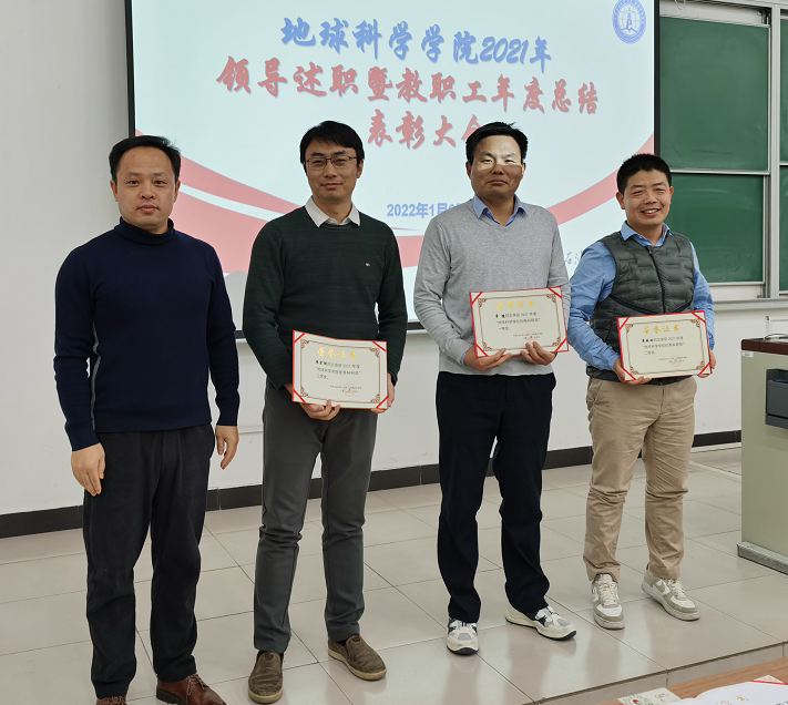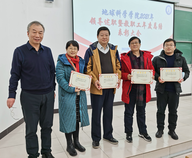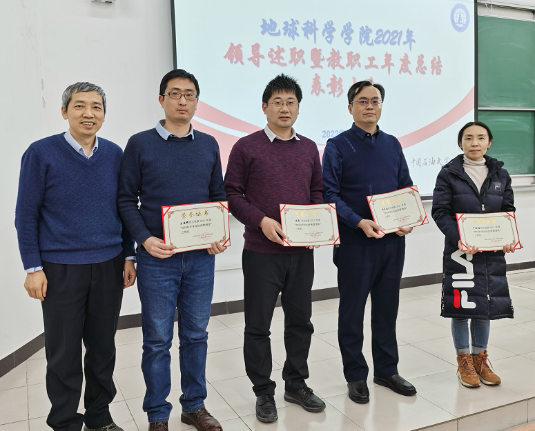 會議對地學院2021年度先進集體、先進個人、院工會先進集體和先進個人的進行了表彰并頒發了榮譽證書,希望全院教師以受表彰的先進集體和個人為榜樣,發揚我校“實事求是、艱苦奮斗”的校風,全面提高自身素質,為地學院的各項工作邁上新臺階而努力奮斗。