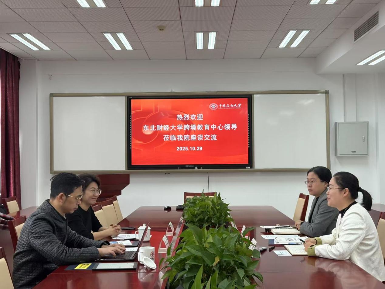10 月 29 日上午,東北財經大學跨境教育中心主任丁曉玉、主任助理徐宙一行來訪,就跨境教育發展展開調研座談。學院副院長劉一凝、出國留學教育中心主任萬璐出席此次座談。