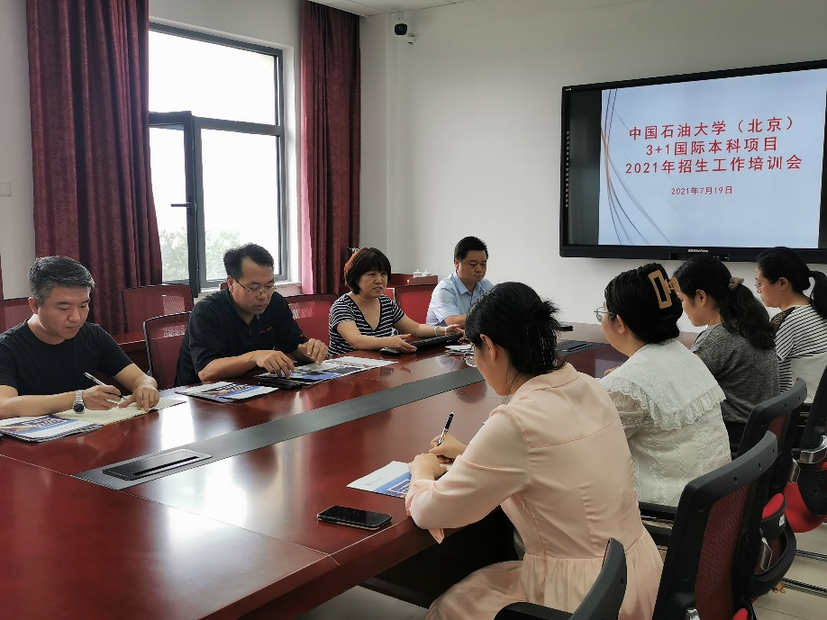 2021年7月19日上午在東教810會議室召開了我校“3+1國際本科項目”2021年招生工作培訓會,正式開啟了“3+1國際本科項目”(SQAAD項目)2021年招生工作。出席會議的有網絡與繼續教育學院副院長李水同志,SQA中心主任曹學庚同志,以及招生團隊負責人周勇剛同志和其它招生工作人員。