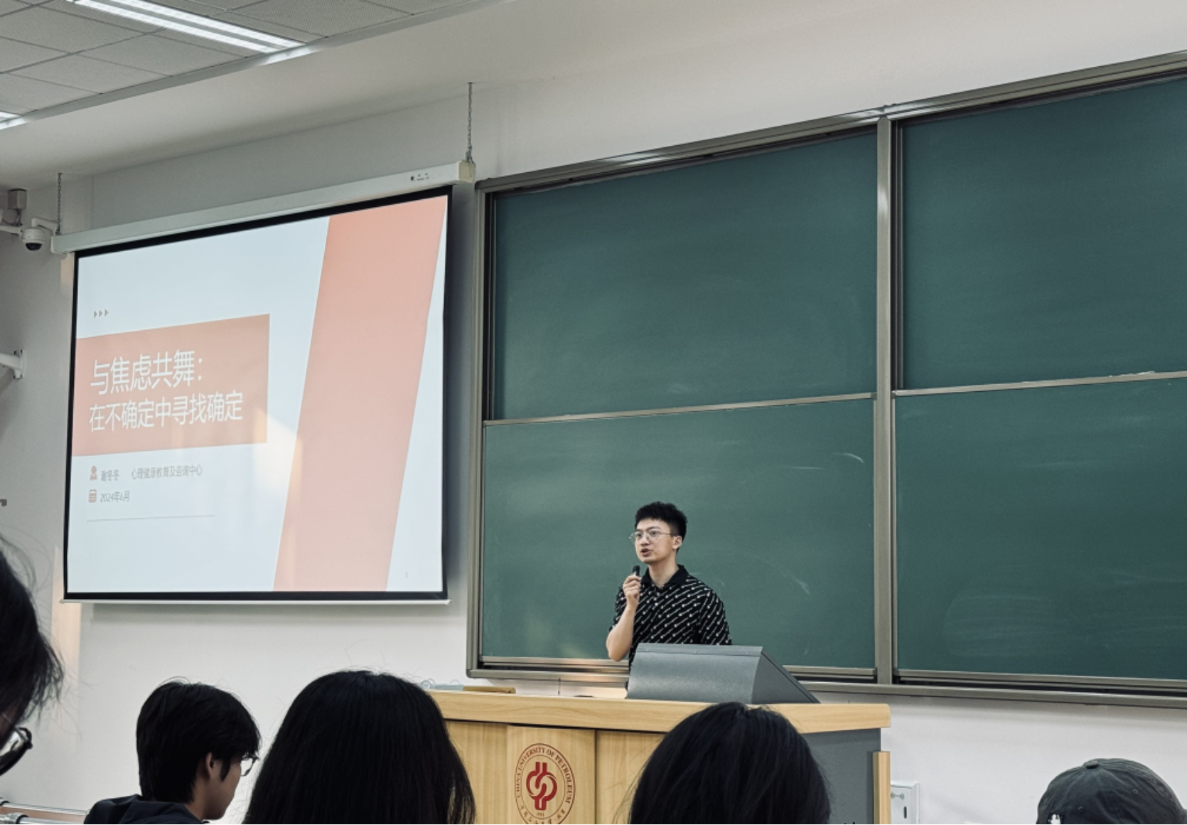 此次培訓會主題為“與焦慮共舞:在不確定中尋找確定”,培訓會由我校心理健康教育及咨詢中心謝冬冬老師主講,會議旨在引導學生在當前充滿變化和挑戰的校園環境中,正確認識并積極應對各種不確定因素帶來的壓力和焦慮。