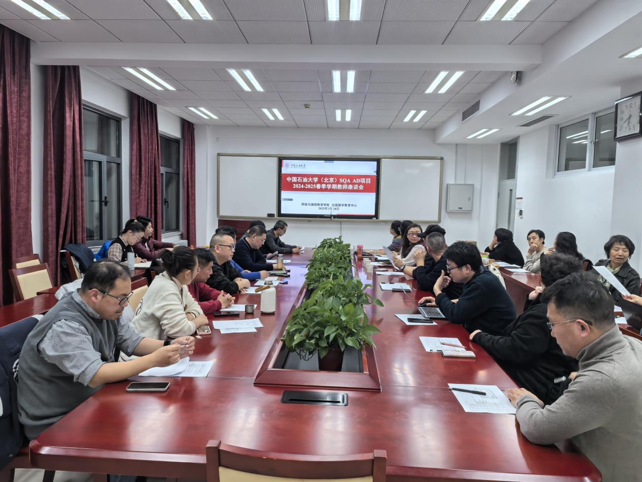 2025年2月28日下午,中國石油大學(北京)SQA項目新學期教師座談會在東教學樓802會議室順利召開。網絡與繼續教育學院出國留學教育中心全體人員以及授課教師,近40人參加此次會議。