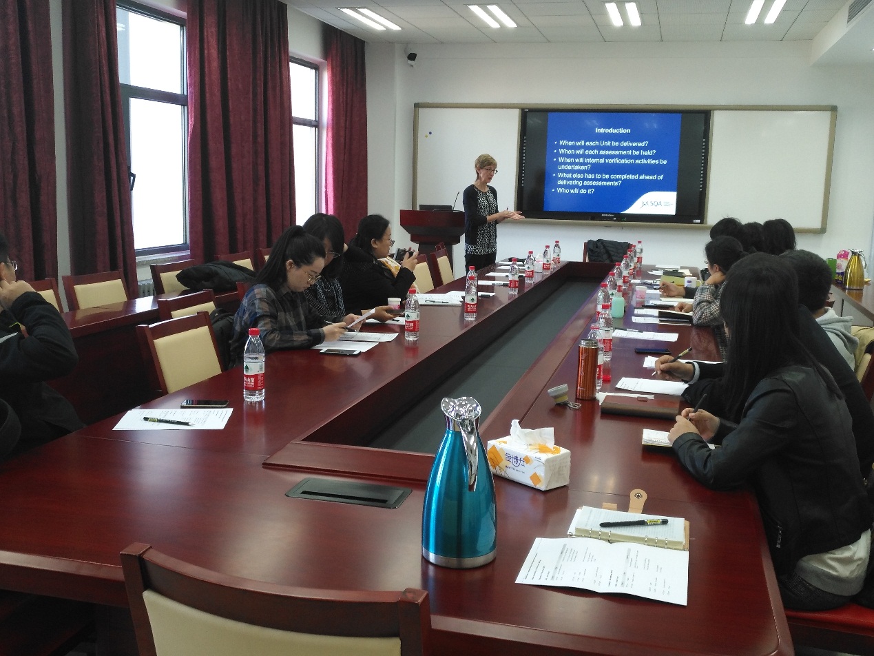 此次培訓(xùn)為期二天,由來(lái)自英國(guó)的SQA AD項(xiàng)目資格實(shí)施經(jīng)理(Qualification Implementation Manager)Janet Strain擔(dān)任培訓(xùn)教師。培訓(xùn)內(nèi)容涉及所開設(shè)專業(yè)的教學(xué)計(jì)劃設(shè)計(jì)與組織、課程大綱、教學(xué)方法、考試方式以及評(píng)分標(biāo)準(zhǔn)。 經(jīng)過兩天的培訓(xùn),參會(huì)教師和項(xiàng)目管理人員掌握了SQA AD項(xiàng)目教學(xué)實(shí)施的整個(gè)流程,對(duì)認(rèn)真執(zhí)行質(zhì)量標(biāo)準(zhǔn)、保障項(xiàng)目高水平運(yùn)轉(zhuǎn)有了更加深刻的理解。