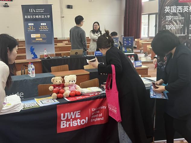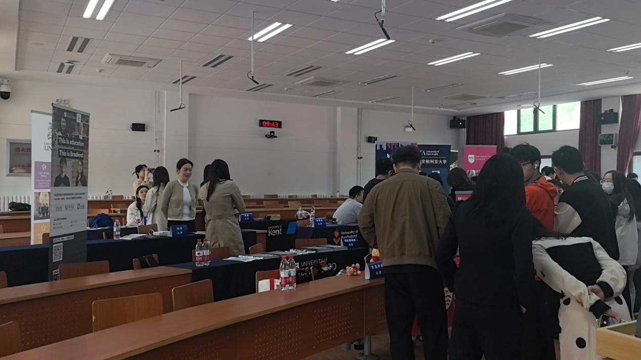 活動現場氣氛熱烈非凡,國外院校代表們精心布置了宣傳展位。展臺整齊擺放著豐富的介紹資料,內容涵蓋了學校歷史文化、學科優勢,以及 SQA 項目詳細的課程設置和留學優勢等,一應俱全。