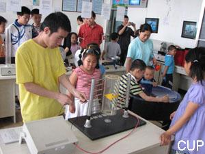 校工會特聘請了6名物理實驗室的工作人員為孩子們進行講解,共接待我校職工子女110多名,孩子們在家長的陪同下興高采烈地來到展示廳,生動有趣的物理現象深深地吸引了他們,孩子們爭先恐后地觀察、操作,參觀過程中,孩子們興致高昂,熱烈討論,有的就一些現象提出問題,在場的工作人員盡力做出了令人滿意的解釋。參觀過程持續了三個多小時,參觀結束后還有很多孩子舍不得離開,他們圍住工作人員,探討著物理世界的神奇奧秘。很多家長對此次活動紛紛表示感謝,此次活動讓小朋友們度過了一個愉快而有意義的節日。