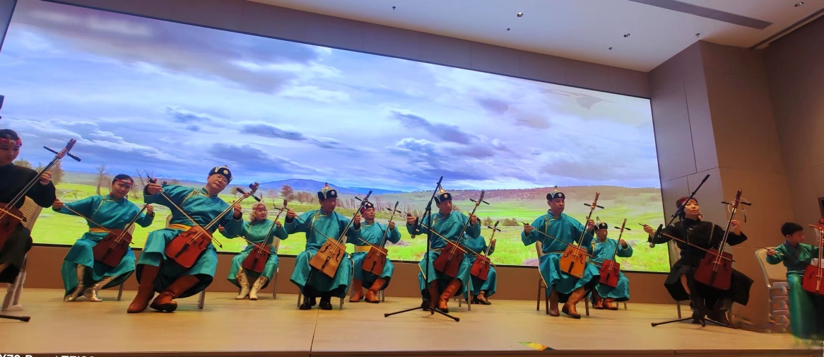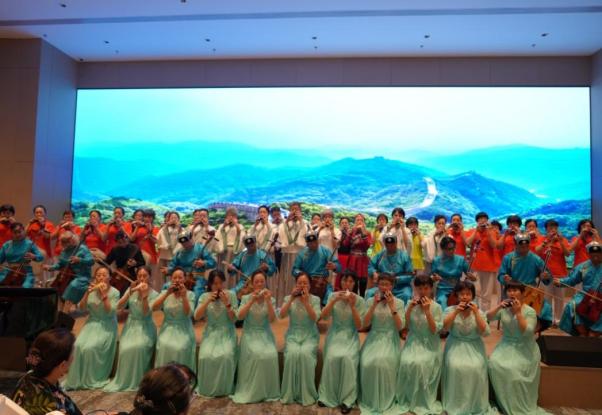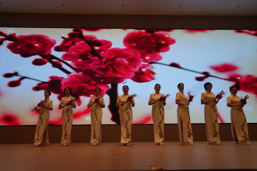 此次演出在陶笛曲目《北國之春》的表演中悠然奏響,展示了以陶笛、馬頭琴、旗袍秀、舞蹈和太極劍為主要形式的14個節目。悅耳動聽的笛聲、絢麗多姿的舞蹈將活動氛圍推向高潮。在37名陶笛演員和13名馬頭琴演員合奏的《龍的傳人》的樂曲聲中,演出圓滿結束。泰康燕園總經理葛明為演出隊伍頒發“志愿服務證明”,并與全體演員合影留念。