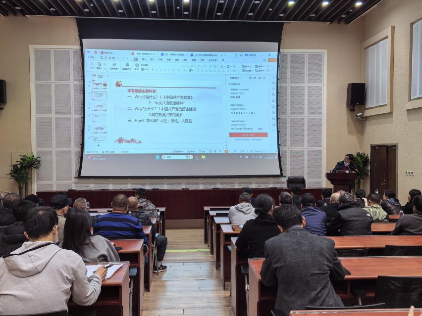 會上,曹培強(qiáng)教授圍繞“深入貫徹中央八項(xiàng)規(guī)定精神學(xué)習(xí)教育”開展集中學(xué)習(xí)與研討,從《中國共產(chǎn)黨章程》、中央八項(xiàng)規(guī)定精神、中國共產(chǎn)黨歷史經(jīng)驗(yàn)、以及“人性黨性人民性”四方面開展學(xué)習(xí),帶領(lǐng)全體黨員同志系統(tǒng)學(xué)習(xí)中央八項(xiàng)規(guī)定的核心要義,闡釋黨中央關(guān)于作風(fēng)建設(shè)的戰(zhàn)略部署和核心要求。