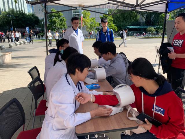 此次活動,本著不忘初心、深入師生、服務師生的工作宗旨,校醫院黨支部在現場擺放了與高血壓疾病相關的健康宣傳展板,循環播放高血壓相關知識的語音資料,醫務工作人員為過往師生發放了健康宣傳手冊、限鹽勺等,為全校師生員工廣泛宣傳、普及高血壓疾病的防治和自檢知識,提醒師生要提高對高血壓疾病的認識和重視程度,倡導大家養成健康的生活習慣,提醒廣大師生要做到合理膳食、適量運動、控制體重、戒煙限酒、心理平衡,有效預防高血壓。