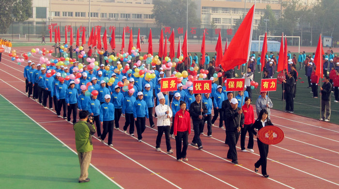 日,中國石油大學教職工趣味運動會在紅旗操場舉行,后勤共一百二十余名職工參與了運動會。