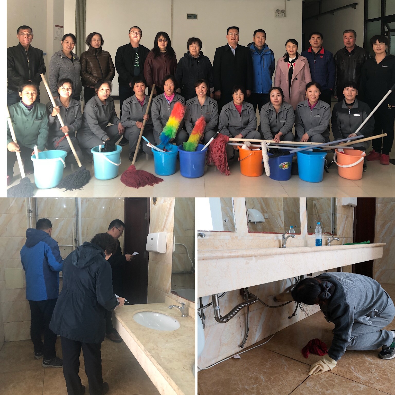 中午12:30比賽正式開始,通過現場抽簽,確定每組負責的2個衛生間,比賽規定參賽選手在30分鐘內對衛生間地面、墻面、便池、隔板、玻璃、窗臺、墩布池、暖氣,垃圾等進行快速清理。比賽中,參賽選手身手矯健,揮汗如雨,爭分奪秒,團結協作,現場氣氛十分熱烈。