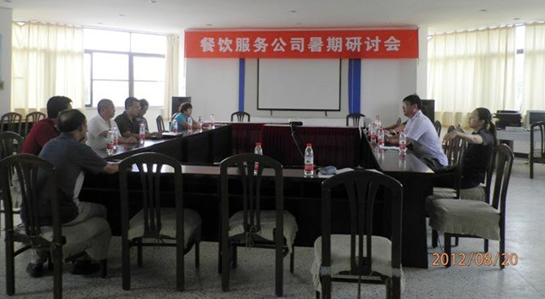 2012年8月20日,餐飲服務公司在南戴河科學實驗站召開餐飲工作暑期研討會,后勤管理處陳桂剛處長、劉海燕副處長、公司正副經理及各餐廳負責人參加了此次研討會。會議由餐飲服務公司經理王德杰主持。
