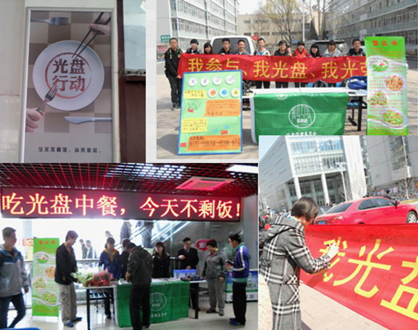 為貫徹落實黨中央、國務院關于“厲行勤儉節約,反對鋪張浪費”重要指示和教育部《關于在高等學校開展反對餐桌浪費專項行動》的通知精神,樹立大學生“節約糧食,文明用餐,爭做文明大學生”的良好風尚,由后勤管理處牽頭,在學生食堂開展了以“光盤行動”為主題、以“勤儉光榮,浪費可恥”為宣傳口號的反對餐桌浪費的專項行動。