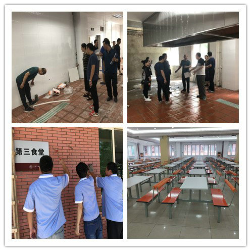 為了保證新學期之前新食堂能夠順利啟用,后勤利用暑假完成了食堂裝修裝潢、水電燃氣改造、加工設施及廚具餐具選購、開荒保潔、人員選配培訓等大量繁雜的工作,餐飲員工冒著酷暑加班加點,在改造竣工后4天時間內完成了食堂啟用的準備工作。今后后勤餐飲服務公司將再接再厲,認真貫徹落實學校各項要求,本著“以人為本、以食為天”的原則,努力提升新食堂管理水平,為東校園建設貢獻力量。