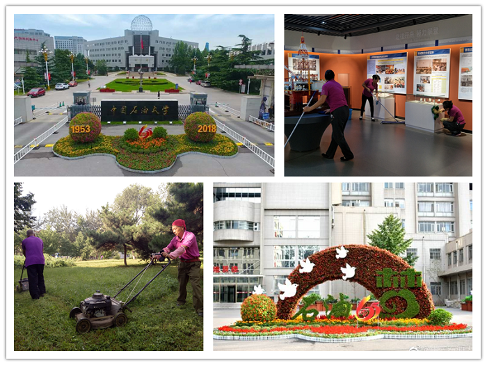 為營造校慶的莊重、喜慶的校園氛圍,物業服務公司在北校園北門、東校園南門和南校園設立三處主題花壇景觀,并在南廣場、主樓北側等增加了花箱和花球等,進一步提升了校慶文化主題形象。校慶日期間,物業全員上崗,做好校園各樓宇、道路和綠化工作,并對體育館、主樓、中油大廈等校慶活動主會場加大保潔頻次。會議客服人員協助有關部門完成了世界能源大學聯盟、“IET杰出大學校長獎”頒獎會等大型會議的會場布置、設備調試、茶歇服務等工作。