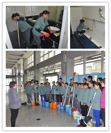 為了進(jìn)一步促進(jìn)衛(wèi)生保潔質(zhì)量的全面提升,提高保潔人員勞動技能及工作的積極性和創(chuàng)造性,10月22日中午,物業(yè)服務(wù)公司在第三教學(xué)樓舉行2015年度物業(yè)保潔員技能比賽活動,后勤黨總支書記趙冬梅、公司經(jīng)理及來自各院系的8名本科生應(yīng)邀參加活動擔(dān)任評委。