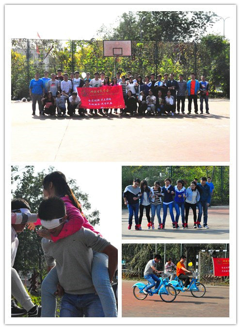10月18日上午,第七屆研究生民管會趣味運動會在我校東操場舉行。運動會項目分別為團體賽“呼啦圈過山車”“七人八腳”“頂書接力”“公主撕名牌”和個人賽“背靠背夾籃球賽跑”“懶惰的自行車”“吹氣球”“送雞毛信”。比賽期間,全體參賽成員都沉浸在興奮與緊張中,臉上洋溢著青春的朝氣與活力。“呼啦圈過山車”作為以協作為主、輸贏為輔的第一個項目,極好的帶動了場上的氣氛。“公主撕名牌”的環節更是點燃了大家的熱情與激情。“七人八腳”和“頂書接力”等的集體項目,加強了各部門成員之間的默契?!皯卸璧淖孕熊嚒钡葌€人賽,展現了每位參賽者的個人實力與技術。
