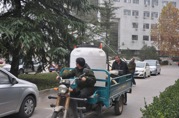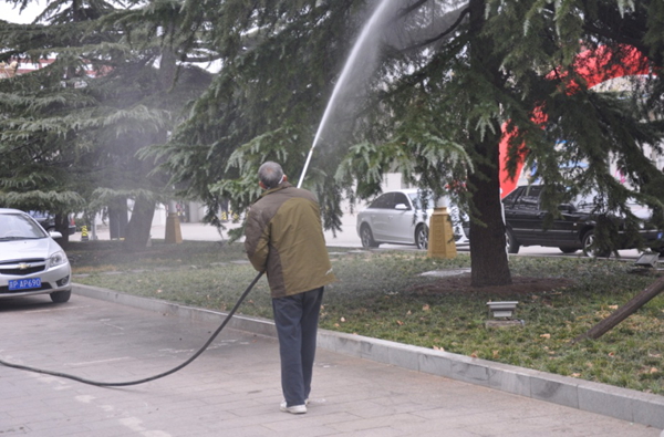 為了保護(hù)校園內(nèi)寶貴的樹木資源,有效的防治病蟲害, 11月27日,物業(yè)服務(wù)公司組織專人對(duì)學(xué)校北門兩側(cè)及校醫(yī)院門前雪松進(jìn)行打藥滅蟲。