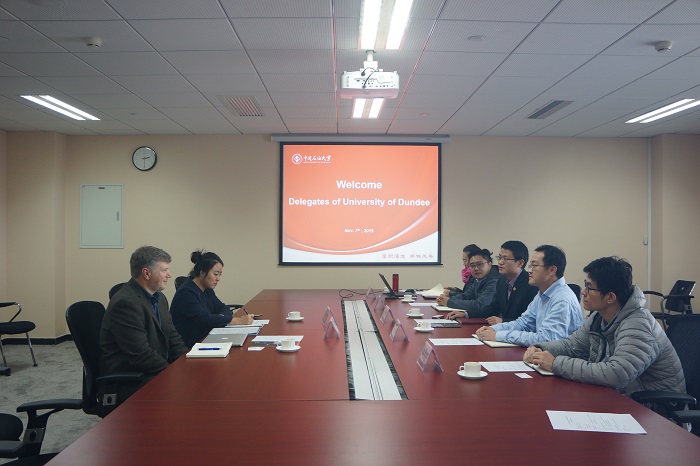 11月7日,英國鄧迪大學科學與工程學院副教授Andrei Pisliakov及中國區合作項目經理 Grace Zhang訪問石大。信息科學與工程學院院長劉偉峰、國際合作與交流處副處長陸尚、石油工程學院副教授彭巖及相關人員會見了外方代表。