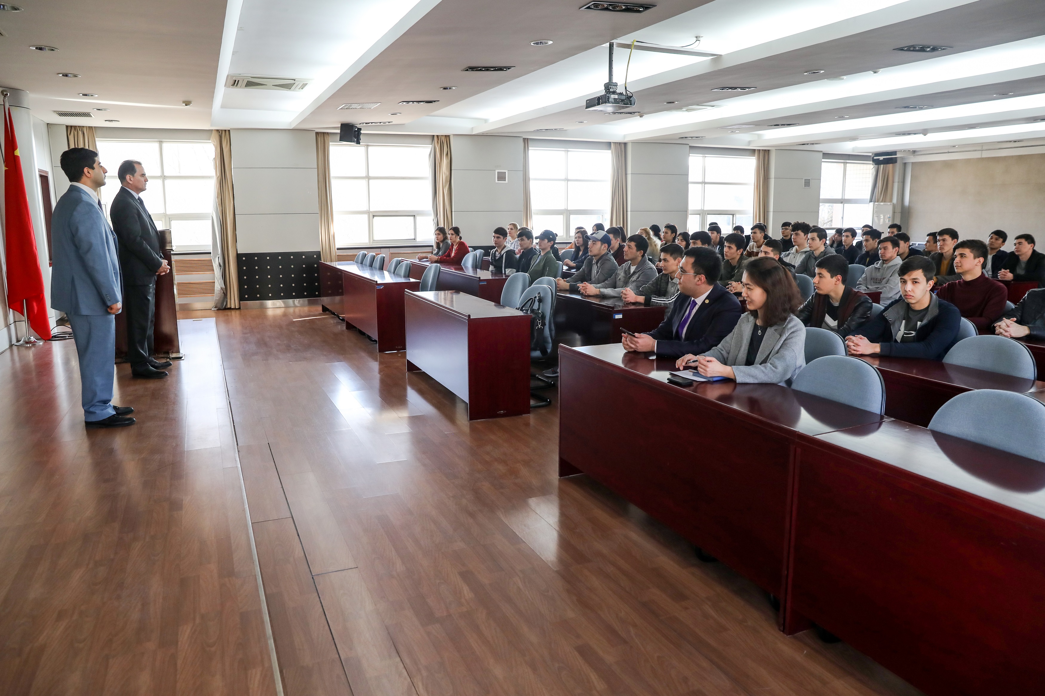 會后,杜爾德耶夫會見了在石大學習的土庫曼斯坦留學生,勉勵他們努力學習,將來為祖國石油天然氣工業發展和中土兩國友誼長青做出努力。