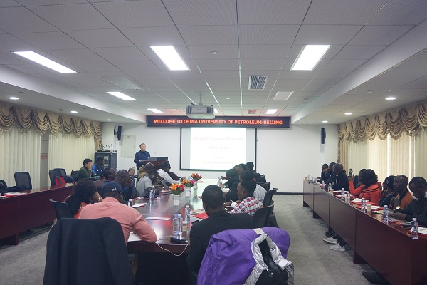 姚軍對考察團表示熱烈歡迎,介紹了學校的基本情況,并希望考察團通過此次機會走近石大、了解石大。地球科學學院劉成林教授為考察團作了題為“全球油氣資源”的精彩講座,詳細介紹了全球油氣資源的分布、儲量、產量及消費量,并對全球油氣發展趨勢進行了預測。講座激起了考察團成員的強烈興趣,大家紛紛舉手提問,熱烈討論交流。