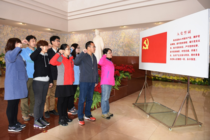 參觀學習活動采用現場講解及自由參觀方式進行,講解員首先詳細地介紹了李大釗同志的革命事跡和光輝一生,李大釗先生1889年10月29日出生在樂亭縣大黑坨村,1927年4月28日被反動軍閥殺害,英勇就義,時年不滿38歲。他是中國共產主義運動先驅和最早的馬克思主義者,是中國共產黨的主要創始人之一。大家在李大釗同志革命事跡介紹和遺物前駐足,認真、詳細地學習介紹內容。最后,全體黨員在支部書記帶領下,重溫入黨誓詞,在黨旗前莊嚴宣誓。