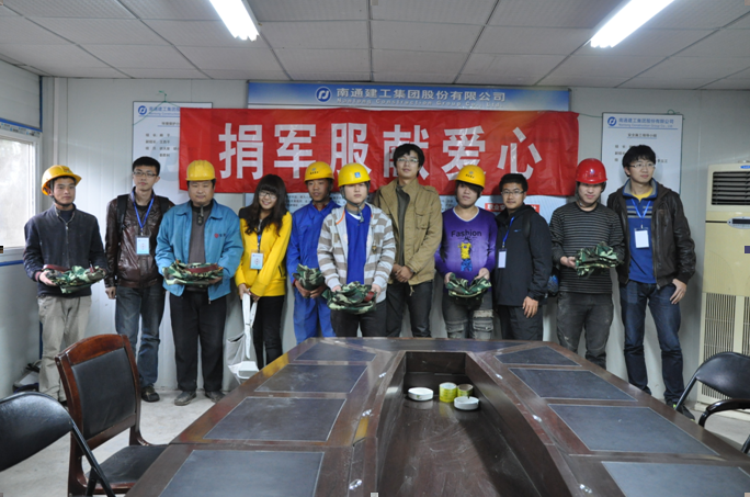 11月1日下午,在學生活動中心項目部會議室,舉行了由地學院啟明星社團發起的向農民工“捐軍服獻愛心”活動的捐贈儀式,啟明星社團代表、基建處、工程施工單位、監理單位領導及農民工代表出席了儀式。