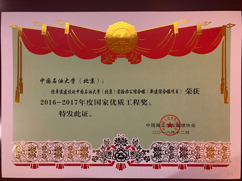 近日, 經中國施工企業管理協會組織專家評審,石大“新建實驗辦公綜合樓項目”榮獲2016-2017年度國家優質工程獎,該獎項全國范圍涉及高校基建項目共11項,是我校第一次榮獲該獎項。該工程項目總建筑面積72000平方米,地上15層、地下2層框剪結構樓,2009年取得立項批復和可研批復,2012年3月取得建筑規劃許可證,11月取得施工許可證并開工建設,2015年2月竣工,3月份投入使用。該工程的總承包單位為北京建工集團有限公司,設計單位為華南理工大學建筑設計研究院,工程監理單位為北京鴻廈基建工程監理有限公司。此前,本工程項目已先后榮獲北京市“結構長城杯”金質獎、“建筑長城杯”金質獎兩項質量獎項;全國建筑業綠色施工示范工程、北京市建筑業新技術應用示范工程兩項科技獎項;全國工程建設項目優秀設計成果三等獎、北京市綠色施工安全文明樣板工地稱號。