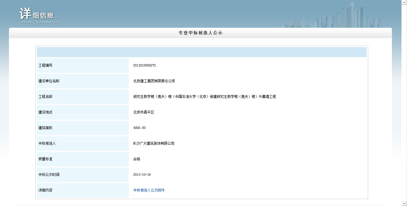 附圖:北京市工程建設(shè)交易信息網(wǎng)研究生教學(xué)(逸夫)樓項(xiàng)目幕墻工程中標(biāo)公告