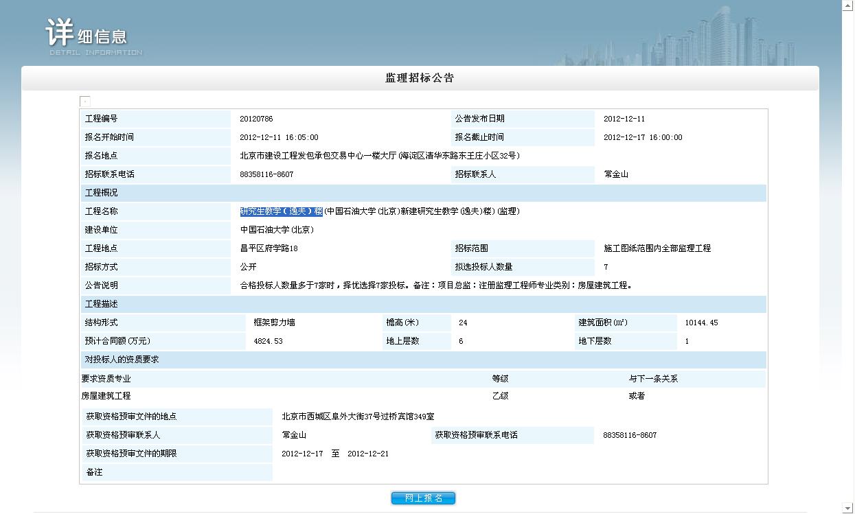 附圖:北京市工程建設(shè)交易信息網(wǎng)研究生教學(xué)(逸夫)樓工程監(jiān)理招標(biāo)公告