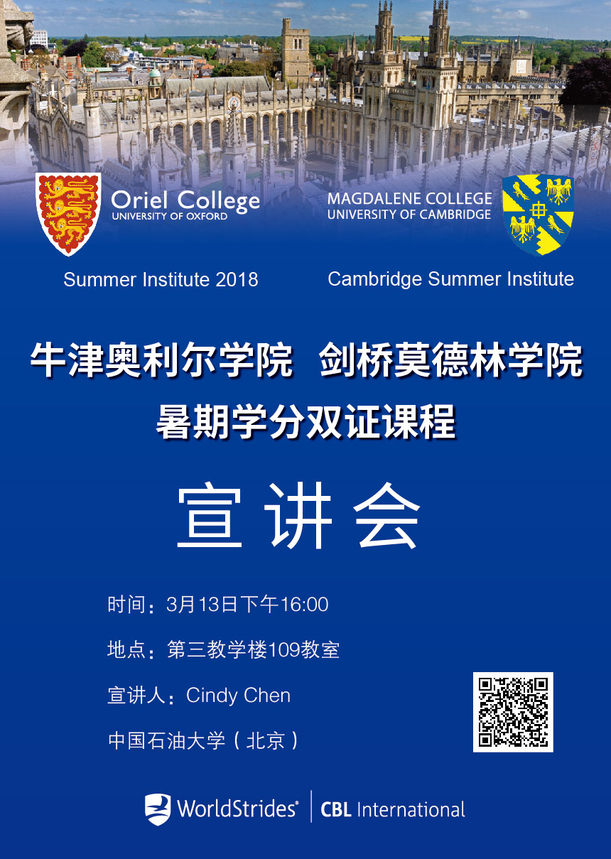2018年牛津大學奧利爾學院,劍橋大學莫德林學院暑期項目宣講會及報名通知