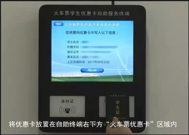 1.微信公眾號注冊并成功綁定后,攜帶本人學生證、身份證到自助終端服務機將個人信息寫入乘車優惠卡。