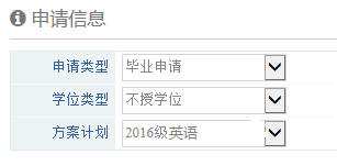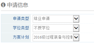 “申請類型”“學(xué)位類型”和“方案計(jì)劃”,選擇說明: