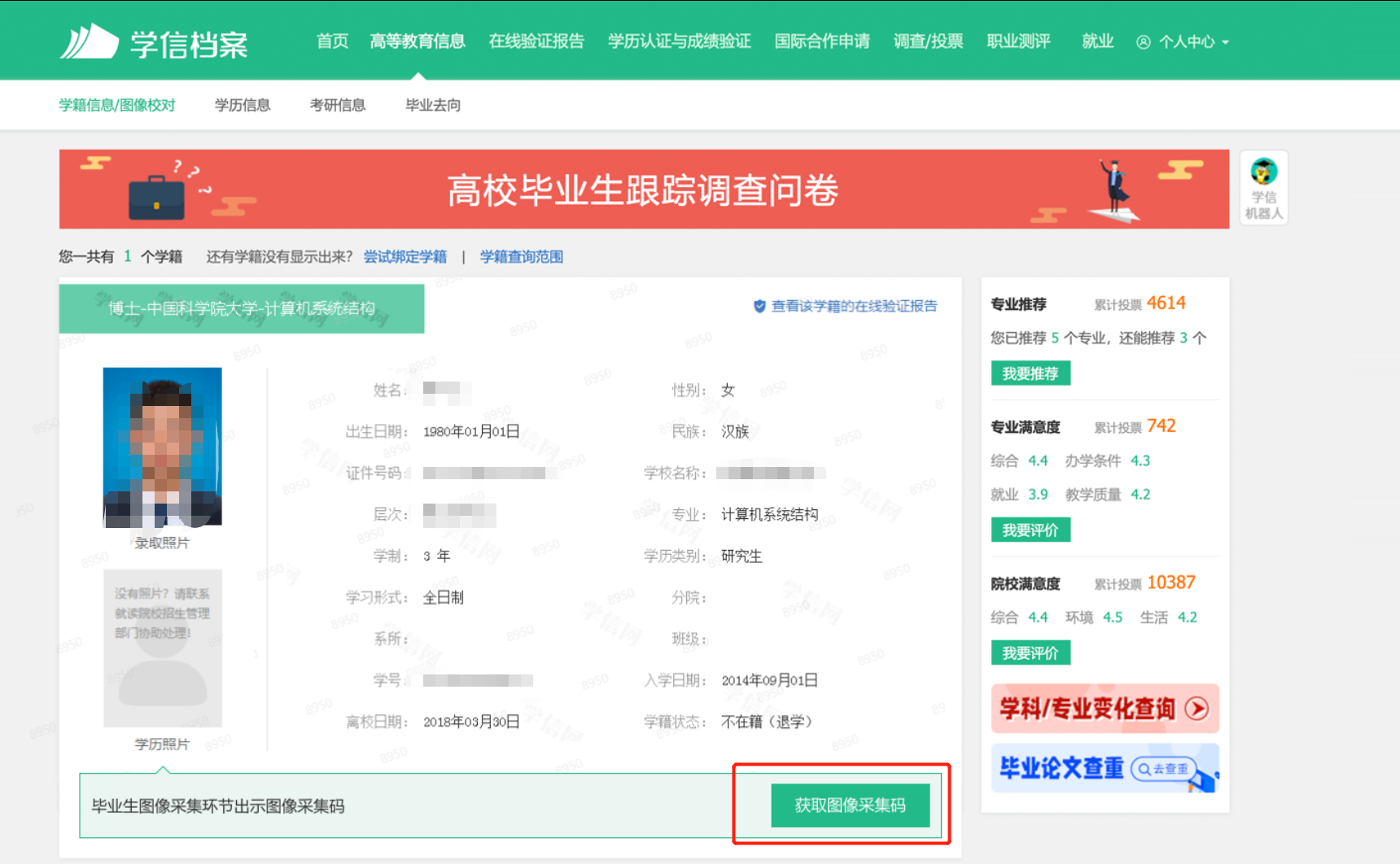 畢業(yè)生圖像采集信息將用于畢業(yè)證書、學位證書制作以及教育部學歷、學位電子注冊,為了確保此項工作的順利進行,現(xiàn)將相關(guān)事項通知如下: